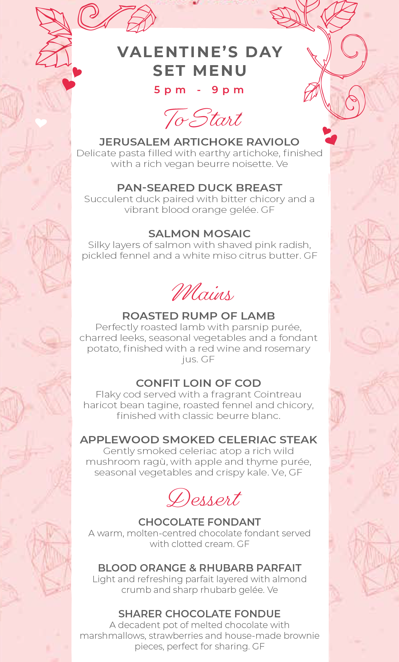 • Served from 5.00 – 9.00pm